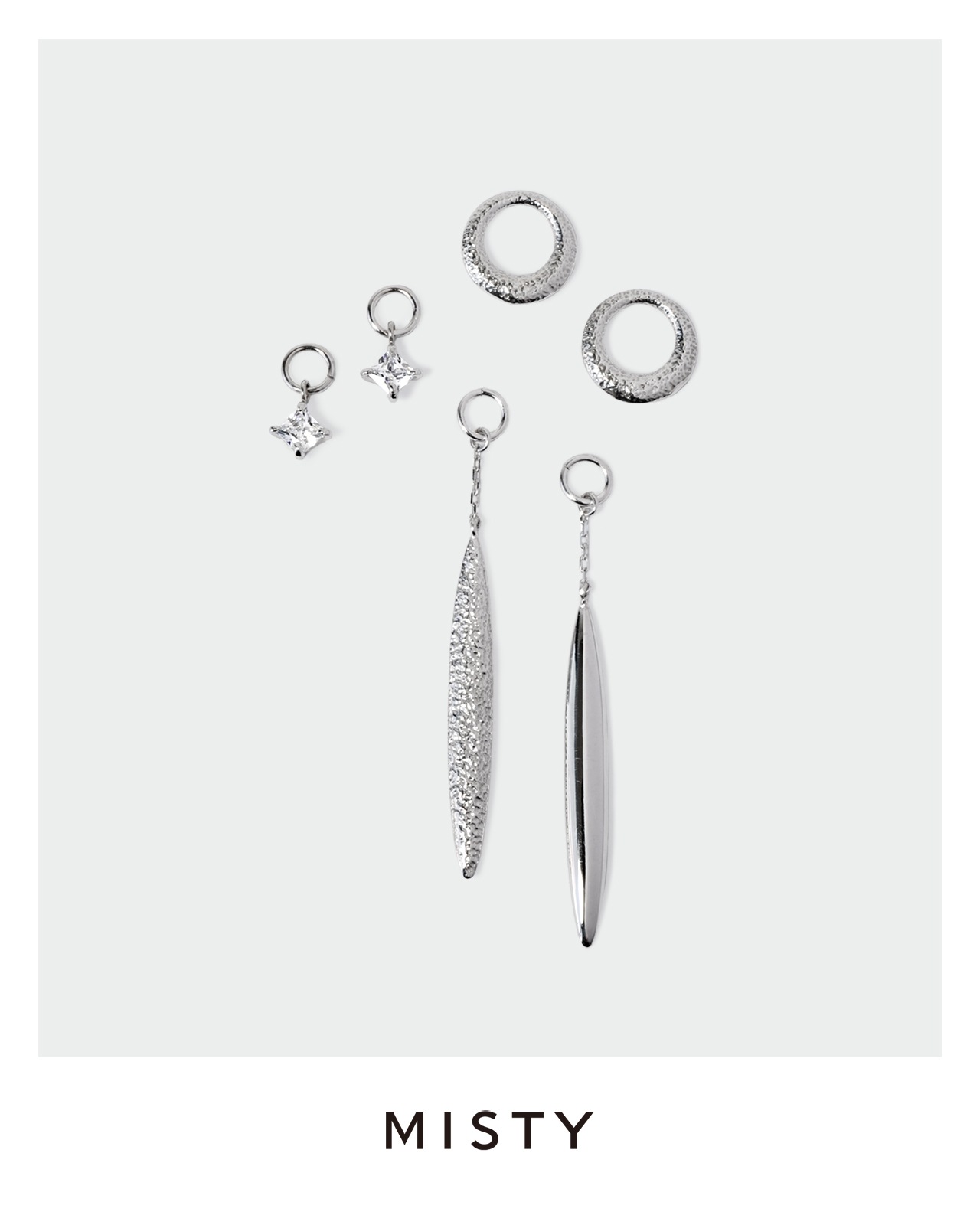 シンプルな一粒のキュービックジルコニアやリバーシブルで使用できるメタリックのチャームなど、リピーターの方もはじめての方も、お楽しみいただけます。