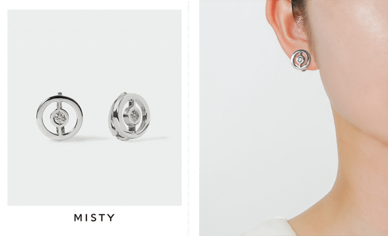 ハートと弓の矢のような美しい光の模様が浮かび上がる、精緻なカッティングを施したキュービックジルコニアが、ひときわ強く輝くシリーズ。
