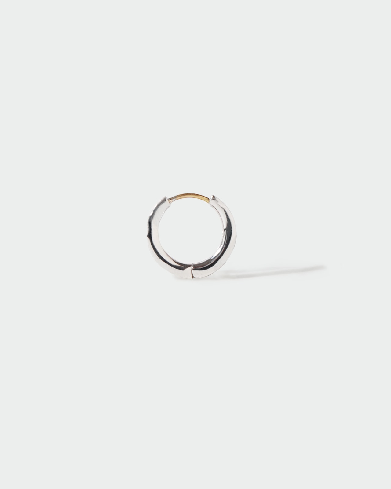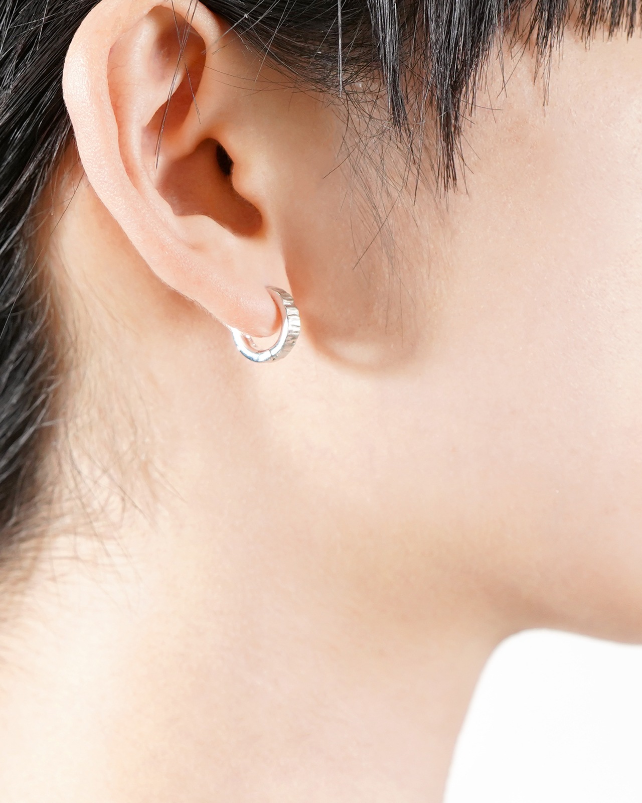 ランダムに削ったようなテクスチャーで、ミニマムなピアスを表情豊かに仕上げました。リネンやコットンなどナチュラルな素材の服に合わせるのもおすすめです。リラクシーで普段使いできるアイテムとして活躍します。ジェンダーレスなデザインなのでシェアアクセとしても。丈夫な10金ポストを使用したキャッチレスピアスは、着ける際にカチッと音がするまで軽く抑えていただくだけと簡単なのも魅力。