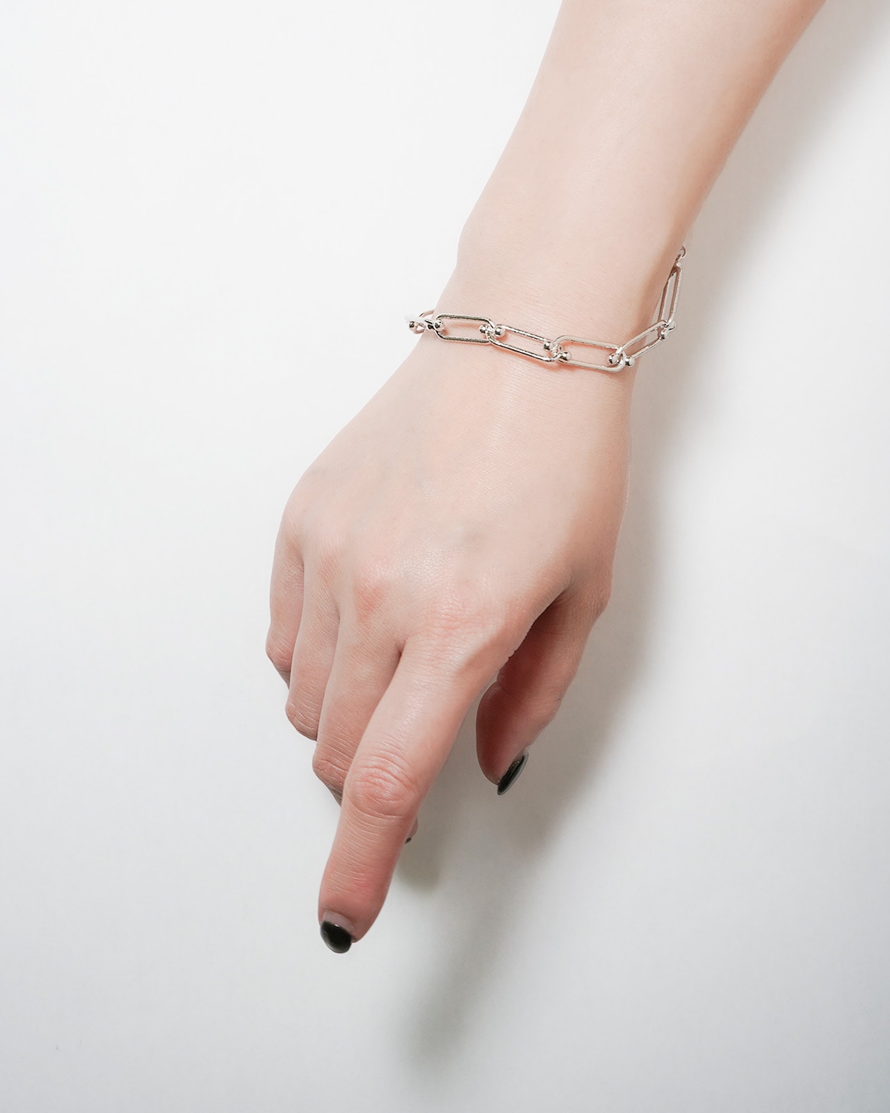 優しいスクエアフォルムが連なるチェーンブレスレット。人気のパヴェチェーンとも重ねやすいサイズ感と快適な着け心地が魅力です。シャインテクスチャーと磨き上げた丸玉のコントラストが、動くたびに繊細な輝きを放ちます。上質さの中に、大人の愛らしさが香るアイテムです。 店頭在庫については、AYAMI Jewelry各店舗にお問い合わせください。