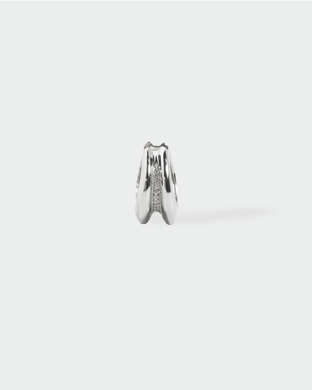 ボリュームメタルが描く、凛とした曲線のイヤーカフ。ミニマルな輝きの中に、センターのストーンが内側からひそやかに光を放ちます。 店頭在庫については、AYAMI Jewelry各店舗にお問い合わせください。