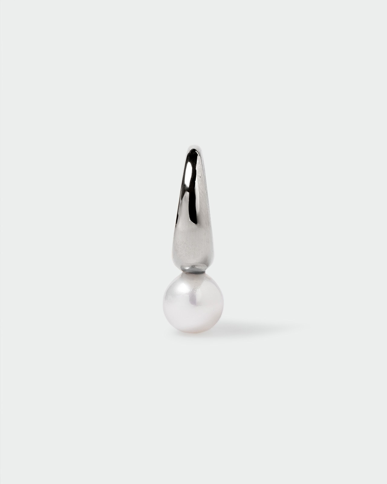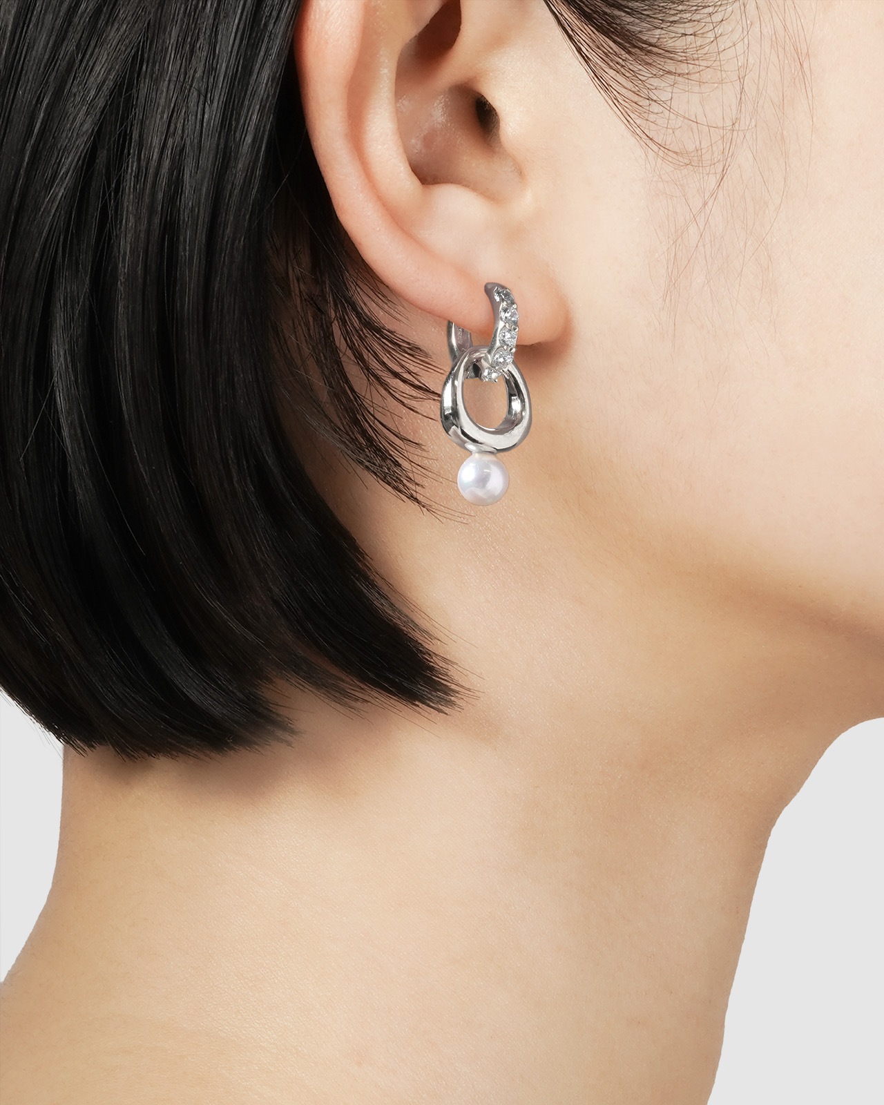 ふんわりとしたトライアングルフォルムのメタルに、艶やかなパールを組み合わせたイヤーチャーム。ミニマルな組み合わせで耳元にさりげない存在感と上品な華やぎを添えます。パールとメタリックのコントラストが、洗練された印象を引き立てます。普段使いからオケージョンシーンまで幅広く活躍し、装いをクラスアップしてくれる万能なアイテムです。 店頭在庫については、MISTY各店舗にお問い合わせください。